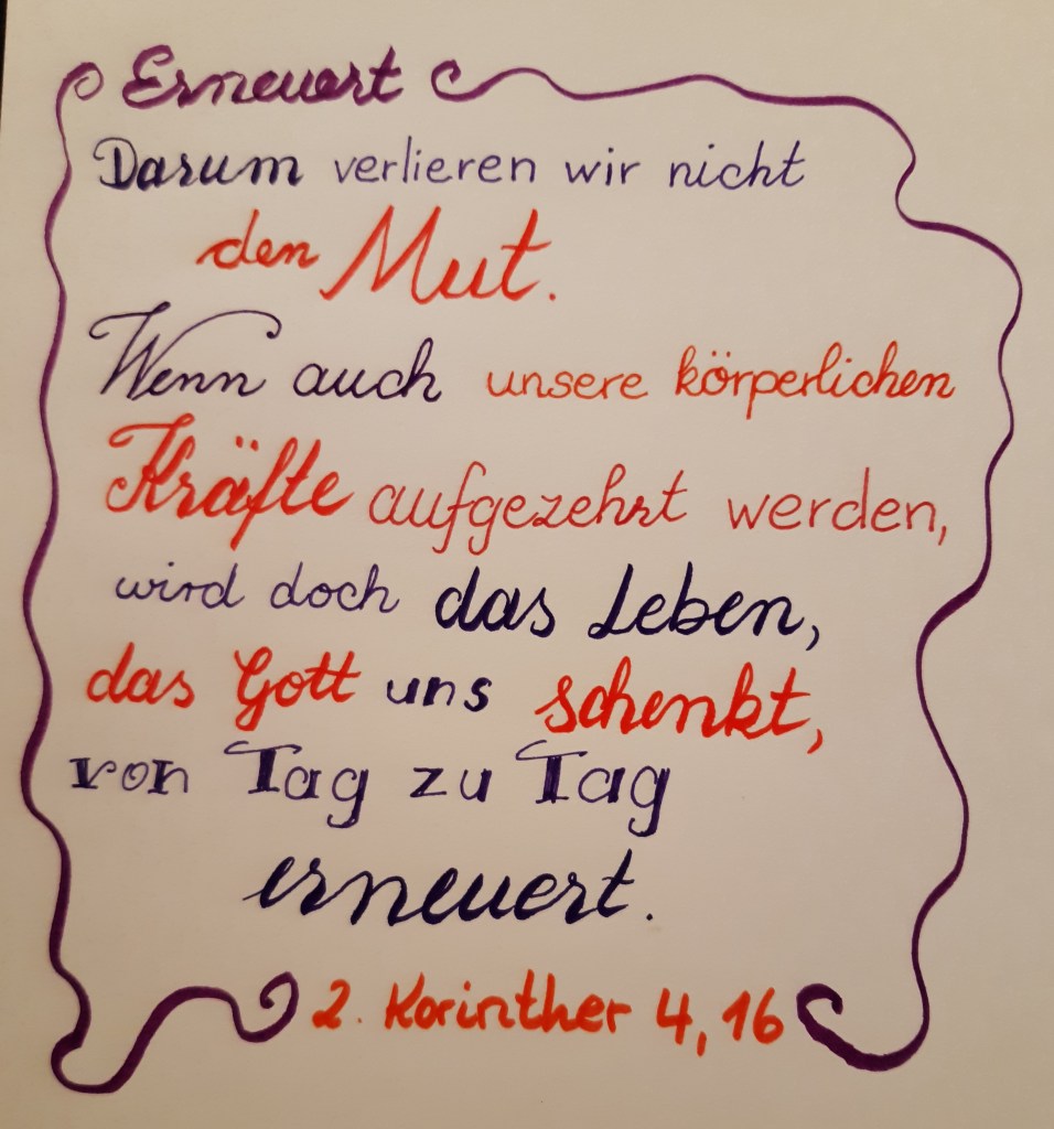 — „Neue Kraft an jedem neuen Tag!“ — Was für ein Geschenk, dass wir immer wieder neu starten können. Wenn unsere Kraft zu Ende ist, können wir ausruhen und wieder neu Kraft schöpfen. Tägliche Erneuerung unseres Lebens, neue Kraft für den neuen Tag – das wünschen wir uns alle! Werdet ihr auch langsam müde mit diesen ganzen Maßnahmen und Verdachtsmomenten? Ich finde es wirklich kräftezehrend. Um nicht den Mut zu verlieren, brauche ich täglich neue Kraft und Erneuerung. Ich will nicht am nächsten Morgen wieder von der alten Kraft zehren müssen. Das wünsche ich dir auch: neue Kraft für jeden neuen Tag!