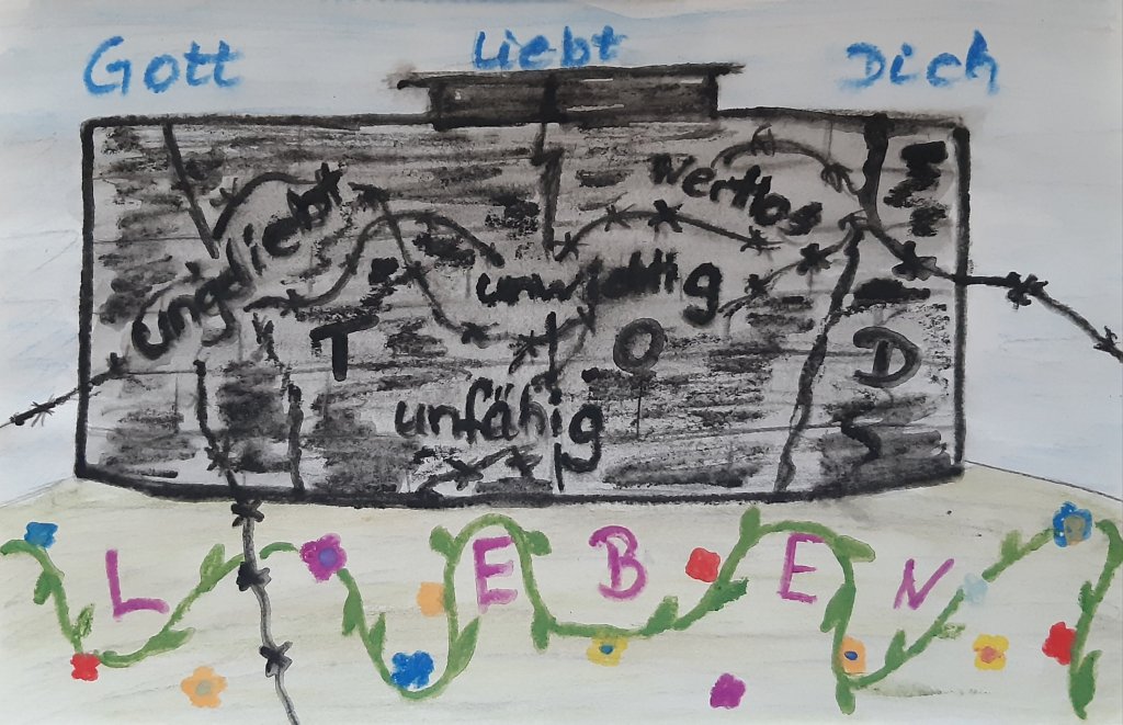 Die Landschaft ist eigentlich schön. Der Titel „Gott liebt dich“ oder „Genieße dein Leben“ ist offiziell Programm: dort sollte sich das Leben abspielen. Trotz diesem „Programm“ befindest du dich im Kerker: dort sind Worte wie „ungeliebt“, „unfähig“, „unwichtig“, „wertlos“ und andere vernichtende Urteile dein (Lebens-)Programm.