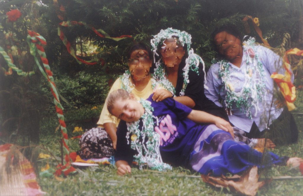 Weihnachten 1999 mit drei Tonganerinnen vor unserem „Weihnachtsbaum“